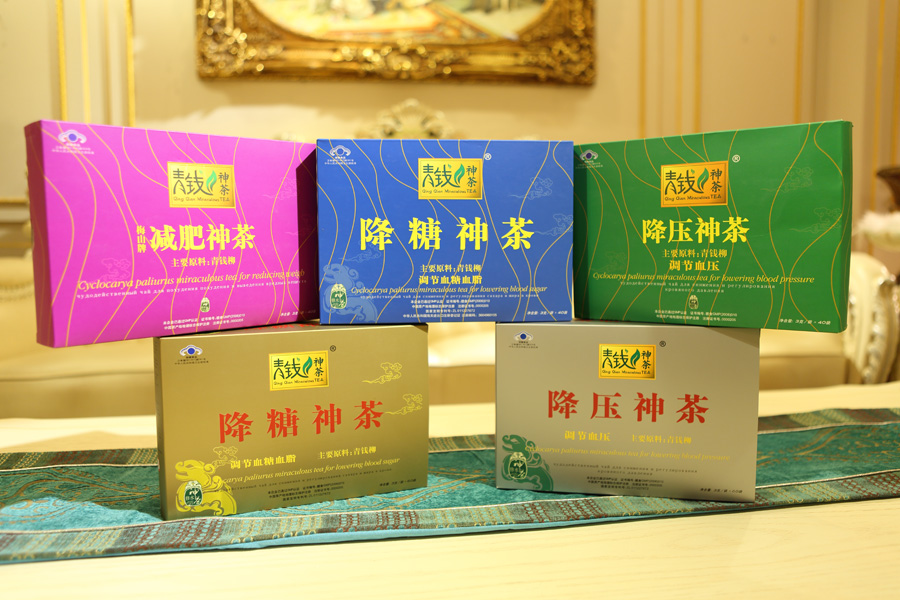 以青錢柳為主要原料生產(chǎn)保健茶申報國家衛(wèi)生部,修水神茶公司是唯一獲得保健食品證書的企業(yè),產(chǎn)品主要原料獲國家原產(chǎn)地保護注冊(注冊證書號:0000205)、產(chǎn)品技術(shù)獲國家發(fā)明專利,2006年修水神茶公司獲GMP認證(證書編號:贛食GMP(2006)010),同年修水神茶公司產(chǎn)品榮獲江西省“著名商標”稱號,2007年青錢神茶系列產(chǎn)品榮獲“江西名牌產(chǎn)品”殊榮,并通過了QS認證(360014020003)。運用現(xiàn)代科學手段,修水神茶公司以青錢柳葉為主要原料研制并推出了“降糖神茶、降壓神茶、降脂神茶、減肥神茶”等系列產(chǎn)品。