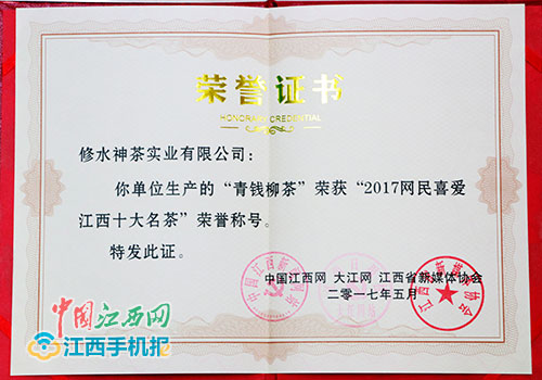 作為保健功能茶,青錢(qián)柳神茶收獲的榮譽(yù)不少。據(jù)了解,曾先后榮獲香港國(guó)際家庭保健品食品博覽會(huì)金獎(jiǎng),聯(lián)合國(guó)發(fā)明創(chuàng)新之星獎(jiǎng)等國(guó)內(nèi)外多項(xiàng)殊榮。神茶產(chǎn)品還被指定為中柬建交50周年皇室指定饋贈(zèng)禮品、中國(guó)保健營(yíng)養(yǎng)理事會(huì)特別推薦產(chǎn)品,共和國(guó)部長(zhǎng)、將軍、企業(yè)家共慶新中國(guó)成立60周年活動(dòng)特供禮茶,出展2010上海世博會(huì)江西館并獲2011中國(guó)(上海)國(guó)際茶葉博覽會(huì)健康茶類(lèi)金獎(jiǎng)等等。