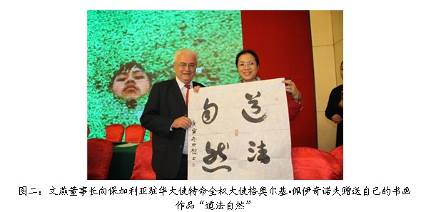 中共中央對外聯(lián)絡(luò)部原部長朱良、中共中央統(tǒng)戰(zhàn)部原副部長田鶴年、中共中央顧問委員會原秘書長郝盛琦、國務(wù)院新聞辦原副主任楊正泉、國家廣播電影電視總局原副局長劉習(xí)良、全國工商聯(lián)原副主席王治國、全國總工會書記處原書記李永海、國家民委原副主任李晉有、農(nóng)業(yè)部原副部長宋樹友、全國婦聯(lián)原副主席劉曉蓮、國資委大型企業(yè)監(jiān)事會主席翟立功、中國電力企業(yè)聯(lián)合會秘書長王永干、中國中鐵股份公司監(jiān)事會主席高樹堂、保加利亞駐華大使特命全權(quán)大使格奧爾基 佩伊奇諾夫、黑山駐華特命全權(quán)大使莉爾雅娜 托什科維奇等領(lǐng)導(dǎo),駐華使節(jié)、書畫藝術(shù)家、企業(yè)家、中外媒體記者近300人出席了會議。